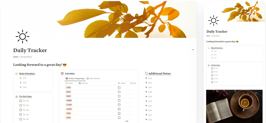 Notion Template | Simple Daily Tracker - Day Life Theme